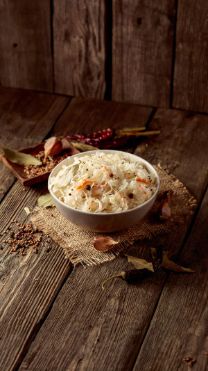 - Toss finished sauerkraut with olive oil and black pepper for a fresh salad.